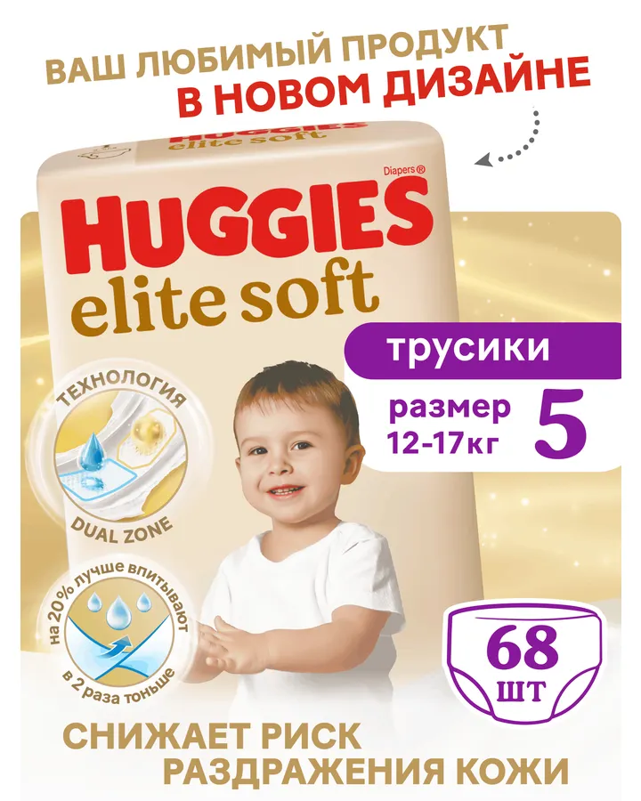 Трусики Huggies Elite Soft 5 (12-17 кг) 68 шт.