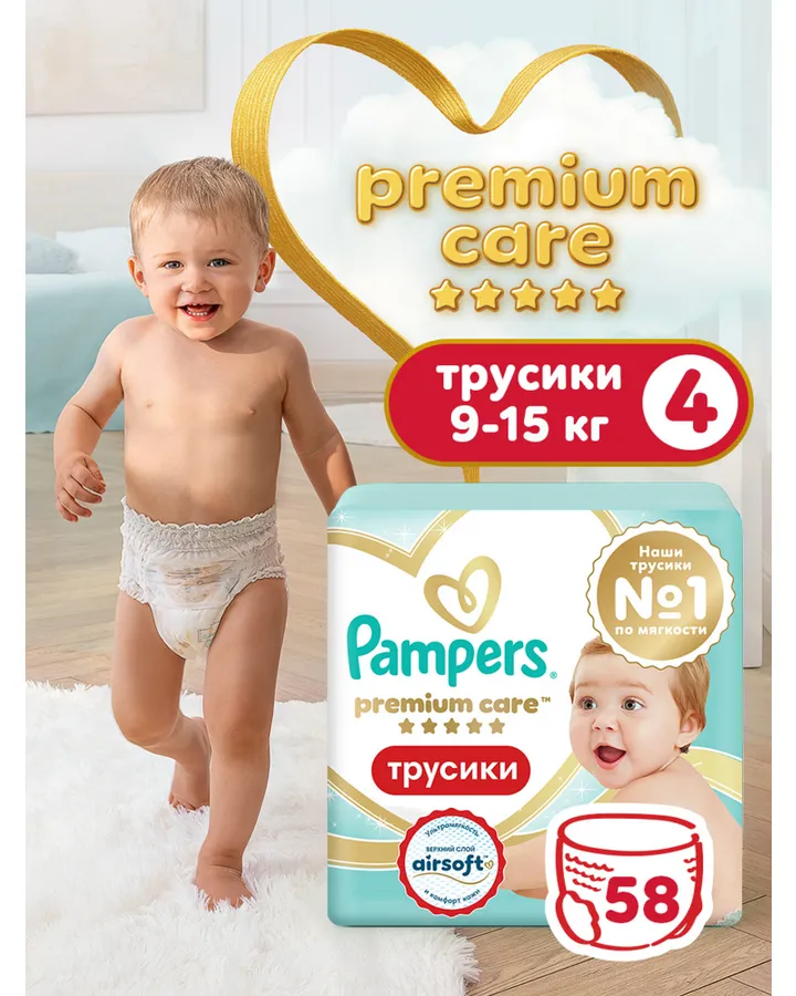 Трусики Pampers Premium Care 4 (9-15 кг) 58 шт.