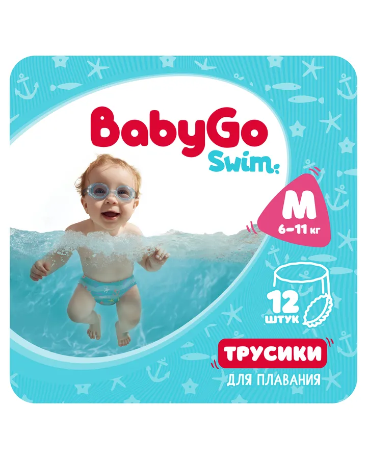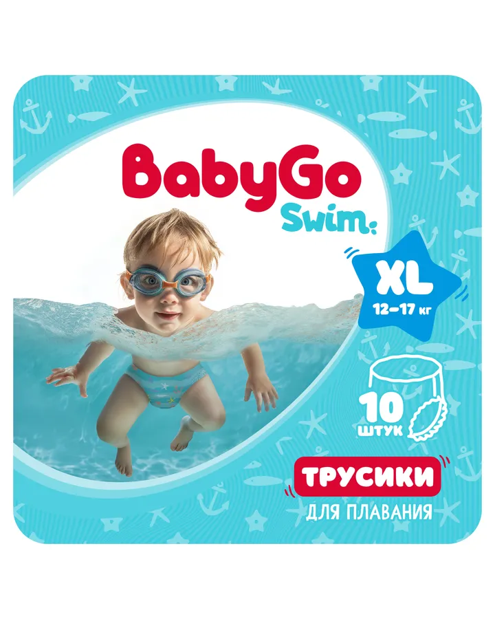 5Трусики BabyGo для плавания 4 (9-14кг) 11 шт.Хорошие трусики, берем для занятий в бассейне, не промокают.