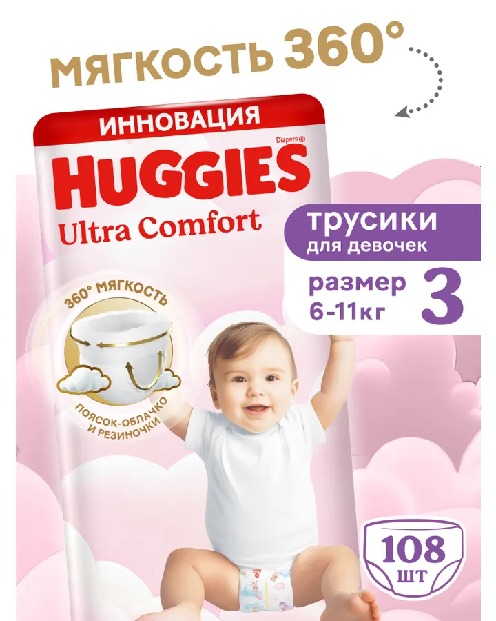 Трусики Huggies Ultra Comfort для девочек 3 (6-11 кг) 108 шт.