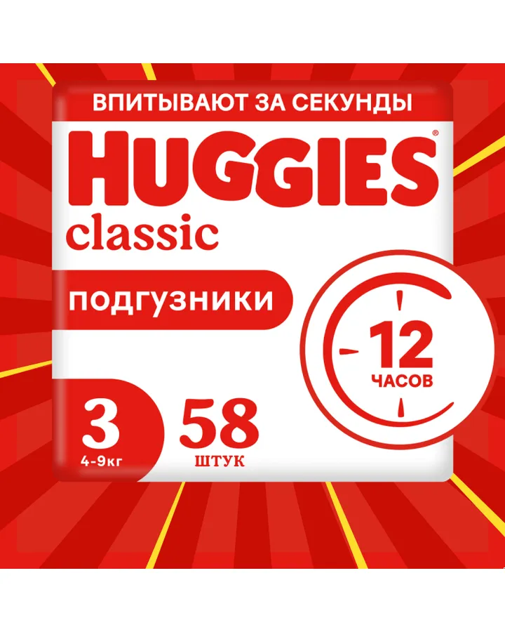 Подгузники Huggies Classic 3 (4-9 кг) 58 шт.