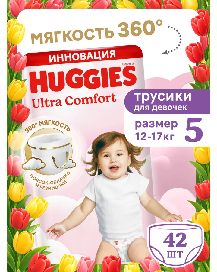 Трусики Huggies Ultra Comfort для девочек 5 (12-17 кг) 42 шт.