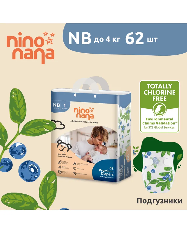 Подгузники Nino Nana NB (0-4 кг) 186 шт.