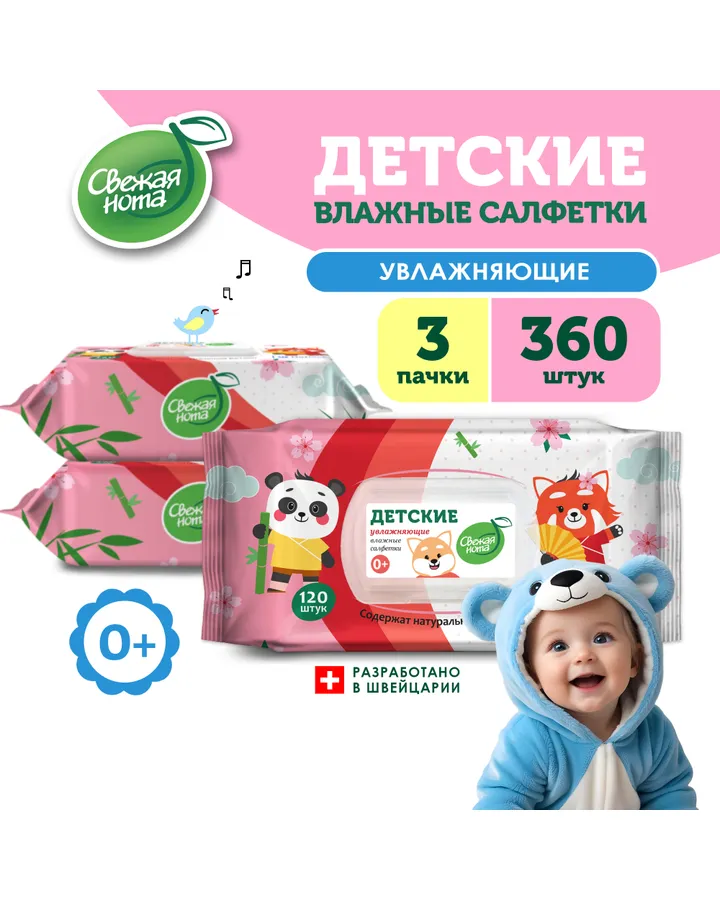 Влажные салфетки Свежая нота 3 упак. 360 шт.