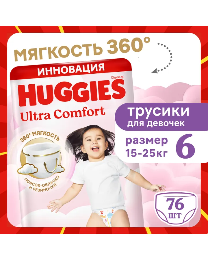 Трусики Huggies Ultra Comfort для девочек 6 (15-25) 76 шт.