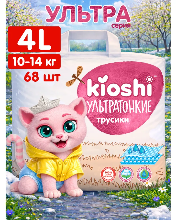 5Трусики Kioshi Premium ультратонкие L (10-14 кг) 40 шт.Хорошие трусики, не протекают и нет опрелостей