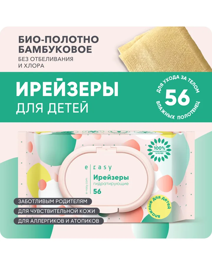 Влажные салфетки E-RASY 100 шт.Использую, когда мало времени на умывание, протераешь лицо, потом смываешь водой. Кожа чистая и гладкая