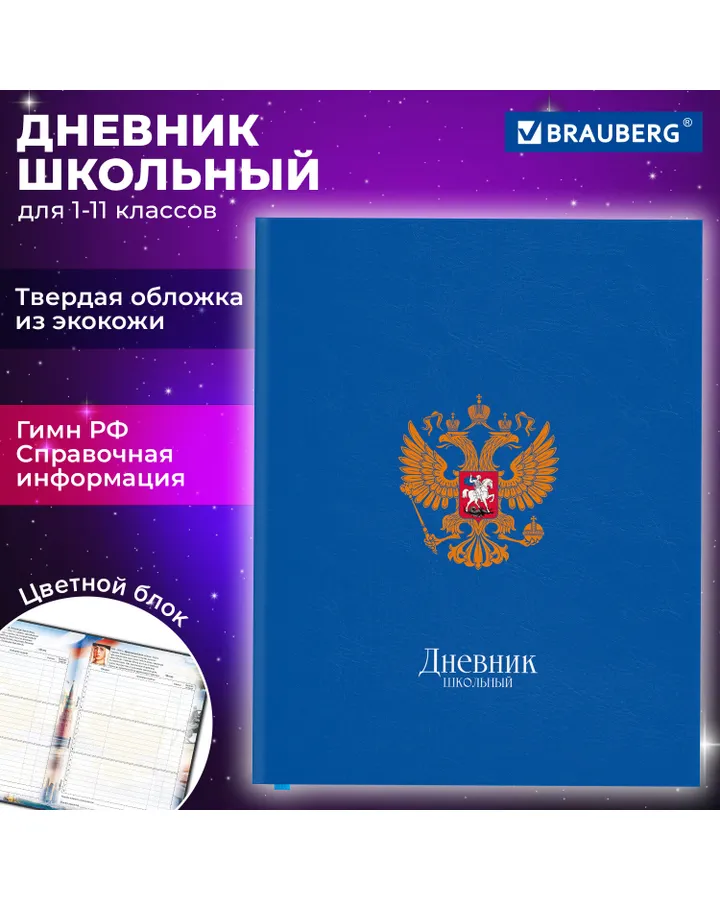 Дневник школьный Brauberg 1-11 класс Россия канцелярия