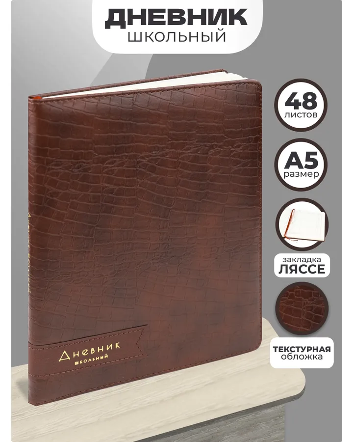 5Дневник Prof-Press Кроко коричневый кожзамОчень качественный и красивый. В такой только пятёрки получать. Для классов постарше смотрится солидно