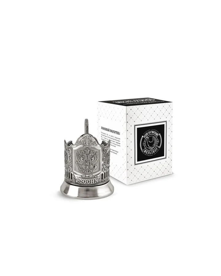 Подстаканник Кольчугинский мельхиор Герб РФ никелированный с чернением