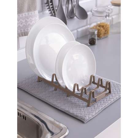 5Коврик для сушки посуды DeNASTIA в наборе с пластиковой сушилкой бежевый T000211Функциональный, удобный