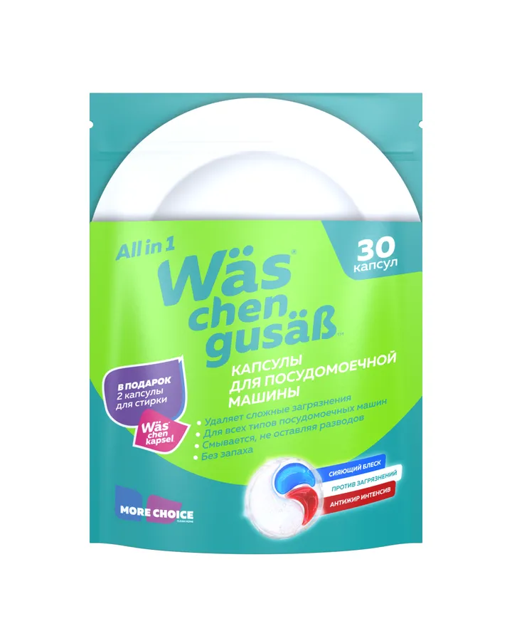 Капсулы для посудомоечной машины 30 шт Was WcG30Очень понравились капсулы!!! Нет белого налеты, стекло блестит, запах приятный/ Рекомендую, для меня это находка. даже решила поделится )))