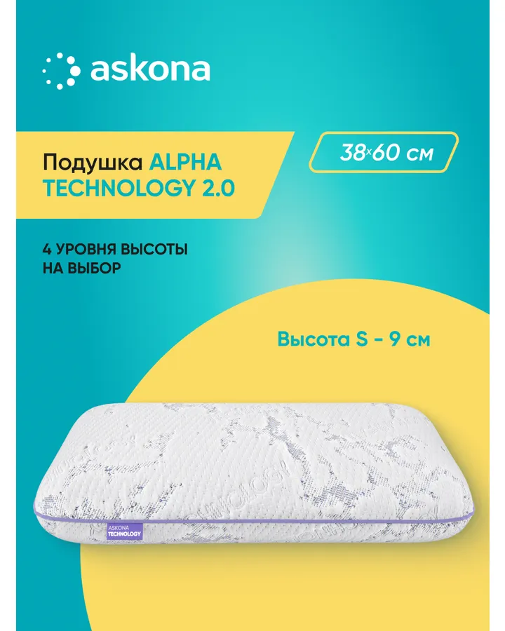 Подушка анатомическая Askona Alpha серия Technology 2.0 S 38 x 60 см