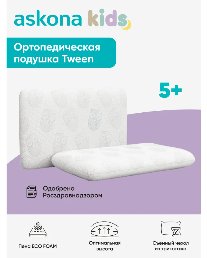 Подушка детская askona kids Tween 39 x 59 см
