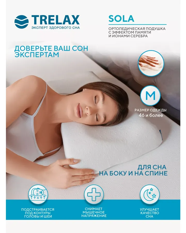 Подушка ортопедическая TRELAX Sola 35 x 60 см