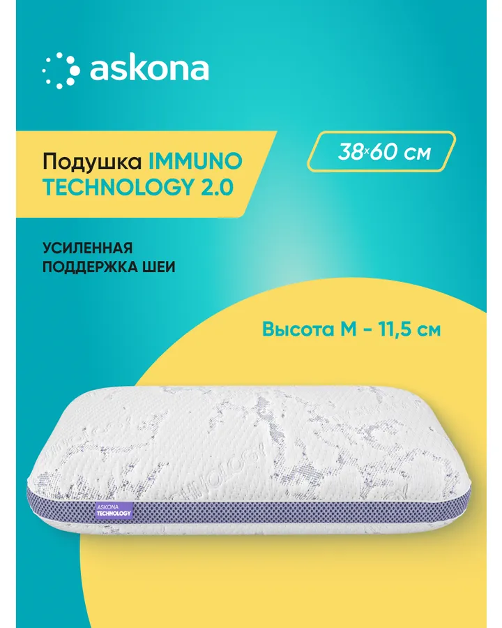 Подушка анатомическая Askona Immuno 38 x 59 см