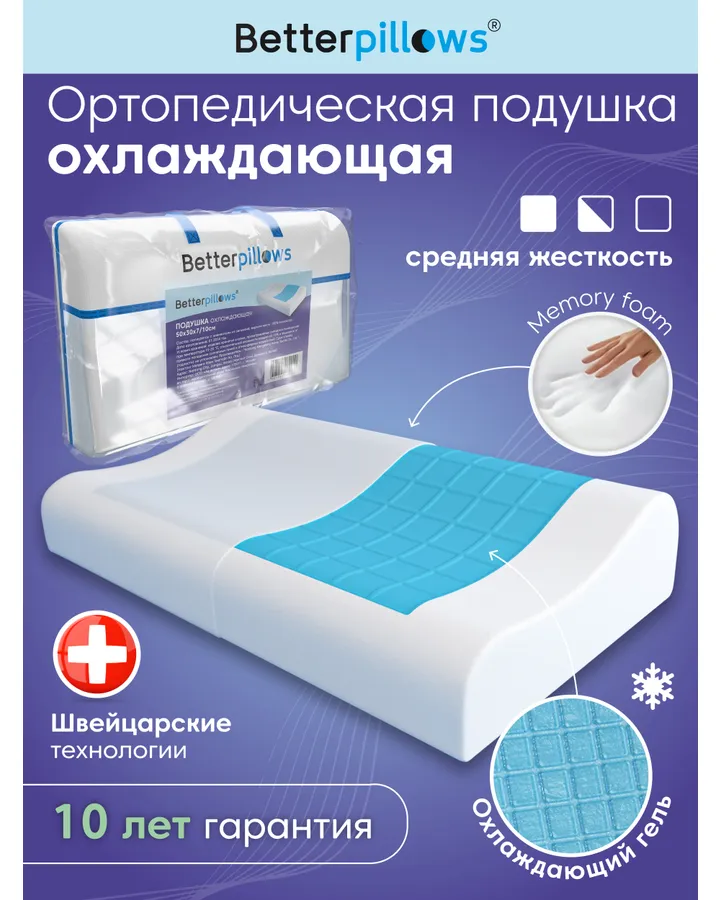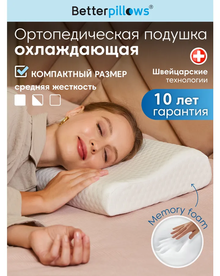 Подушка ортопедическая Betterpillows Healthy sleep 30 x 50 смХорошая подушка, люблю такие