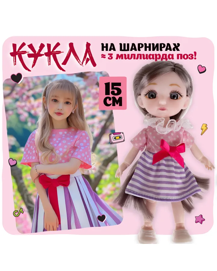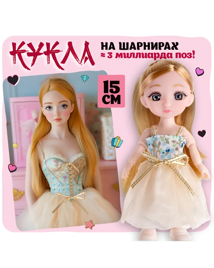 Симпатичная, с милым личиком. Шарниры работают. Волосы нормальные, не редкие.