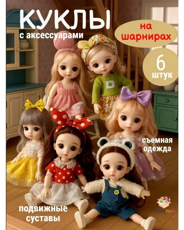Кукла мини TrendToys для девочки шарнирная 6 шт высота 16 см