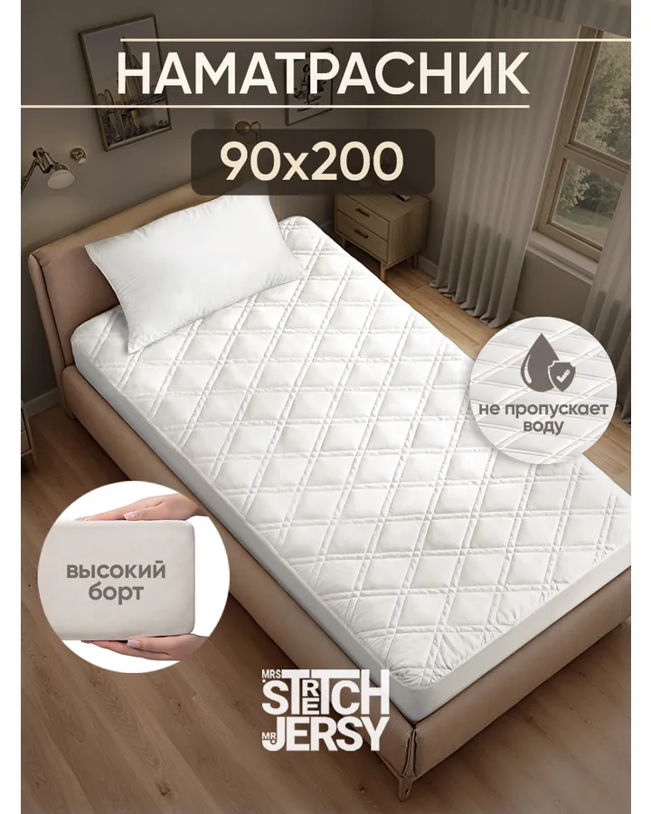 Наматрасник Mrs.Stretch Mr.Jersy Белый 200х90
