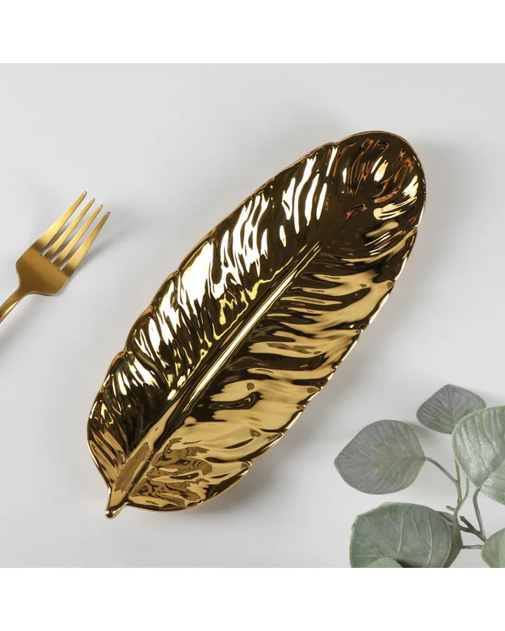 Блюдо сервировочное Sima-Land керамическое «Золотой лист» 26×10 см цвет золотой