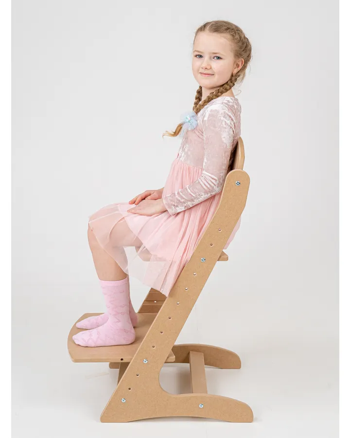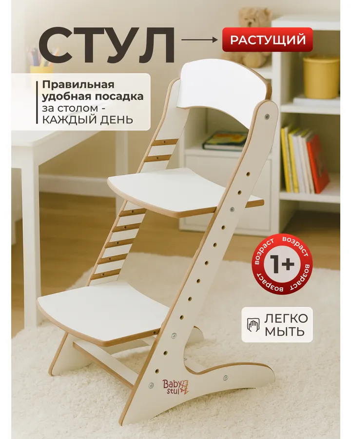 Хороший стульчик 👍 Возможно, из-за краски немного кажется скользковат, но, в целом очень удобно, пользуемся только под присмотром родителей, занимает меньше места в отличие от стульчика для кормления, ребёнок сидит радостный за столом со всеми (нам 1,7). Собрала его быстро и достаточно легко, сразу не закручивала болты туго, так как сперва примеряли, как нам удобно, и перекручивали. Сидушку закрутили на крепление поглубже, а ступеньку наоборот, чтоб удобнее было ставить ножки. Рост ребёнка 82 см