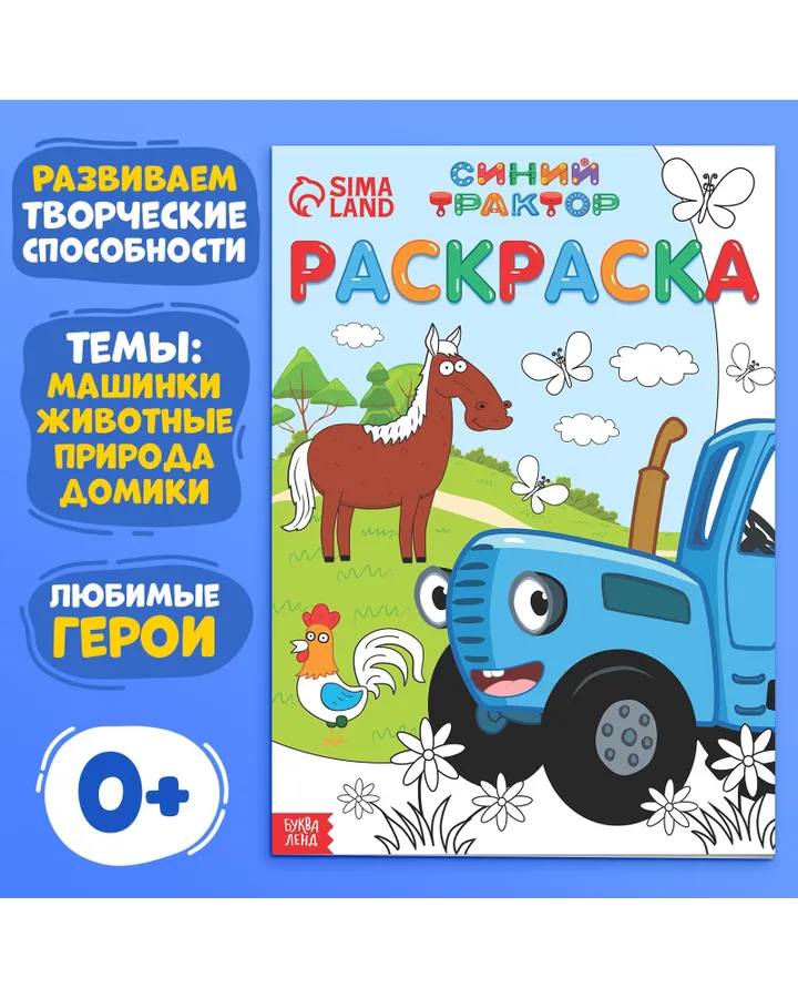 Раскраска Синий трактор 12 стр А4 Синий трактор