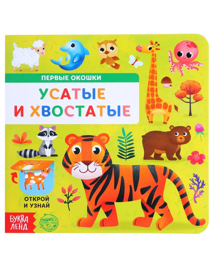 Книга Буква-ленд картонная с окошками Усатые и хвостатые 10 стр