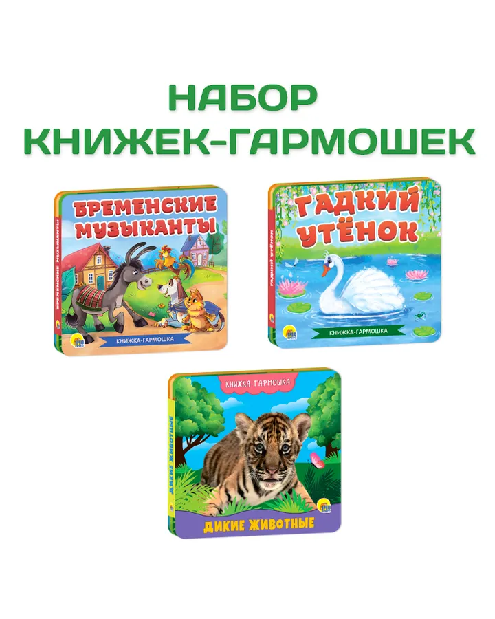 Книги Проф-Пресс гармошки картонные набор 3 шт Бременские музыканты+Гадкий утёнок+Дикие животные