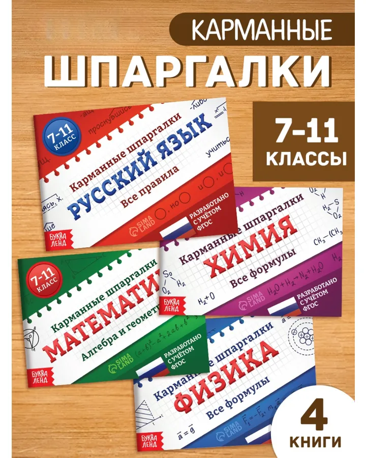 Набор Буква-ленд книг Карманные шпаргалки для 7 11 класса 4 книги по 64 стр