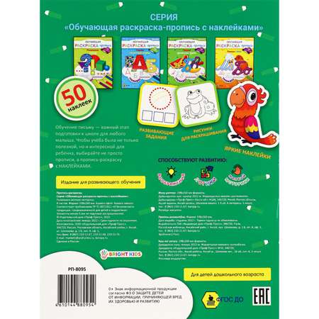 Раскраска-пропись с наклейками Bright Kids Обучающая Тренажер Пишем прописные буквы А4 8 листов