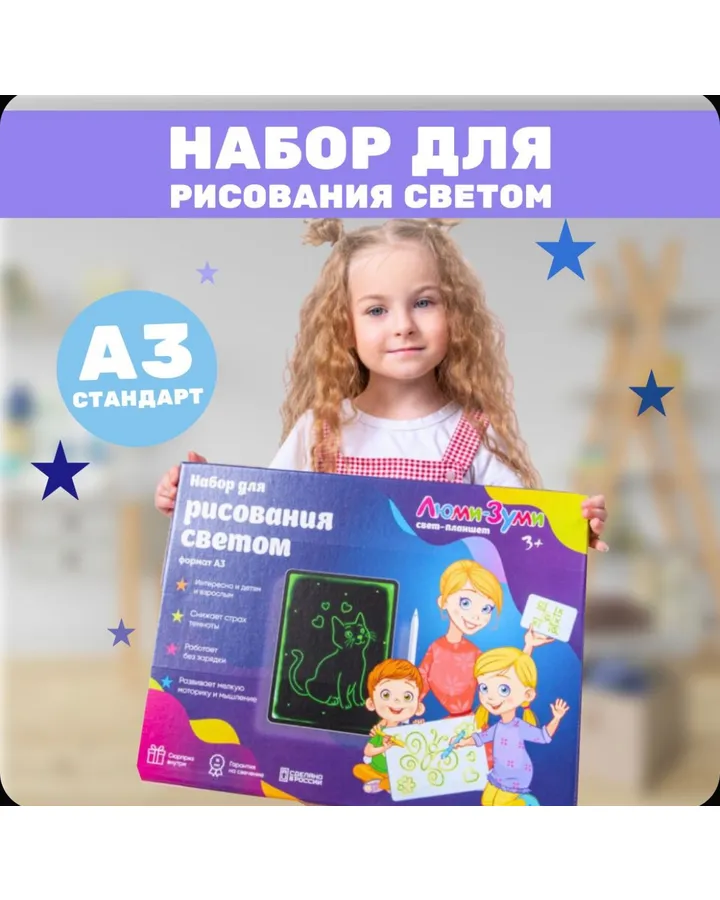 5Набор для рисования светом AttivioХорошая игрушка, дочка долго играла, даже я подсела, но уже начала мигать лампочка.