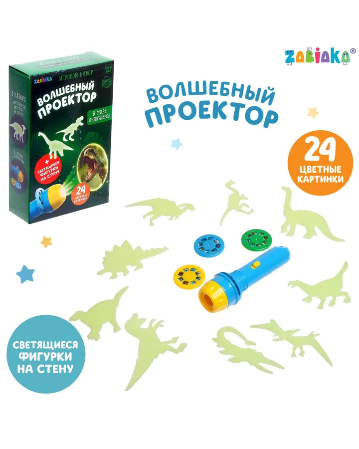 Замечательный проектор, все на месте, фломастеры, слайды с картинками, раскраска. Проектирует картинку четко! Крепкий пластик, без запаха. Батарейки в комплект не входят.
