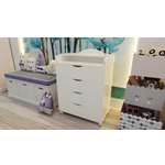 Хороший комод, понравился. Со сборкой проблем не возникло. Направляющие нормальные, ящики выдвигаются плавно, не выскакивают. Жаль нет доводчиков, но не все же сразу. Высота ящиков позволяет использовать органайзеры из Икеа и аналоги (11-12 см высотой). Верхний ящик с разделителями, удобно. Нижний - больше высотой, удобно складывать запас подгузников и объемные вещи. Пеленальную доску в будущем можно открутить. Матрасики для пеленания подошли у которых в основании около 50 см плюс бортик.