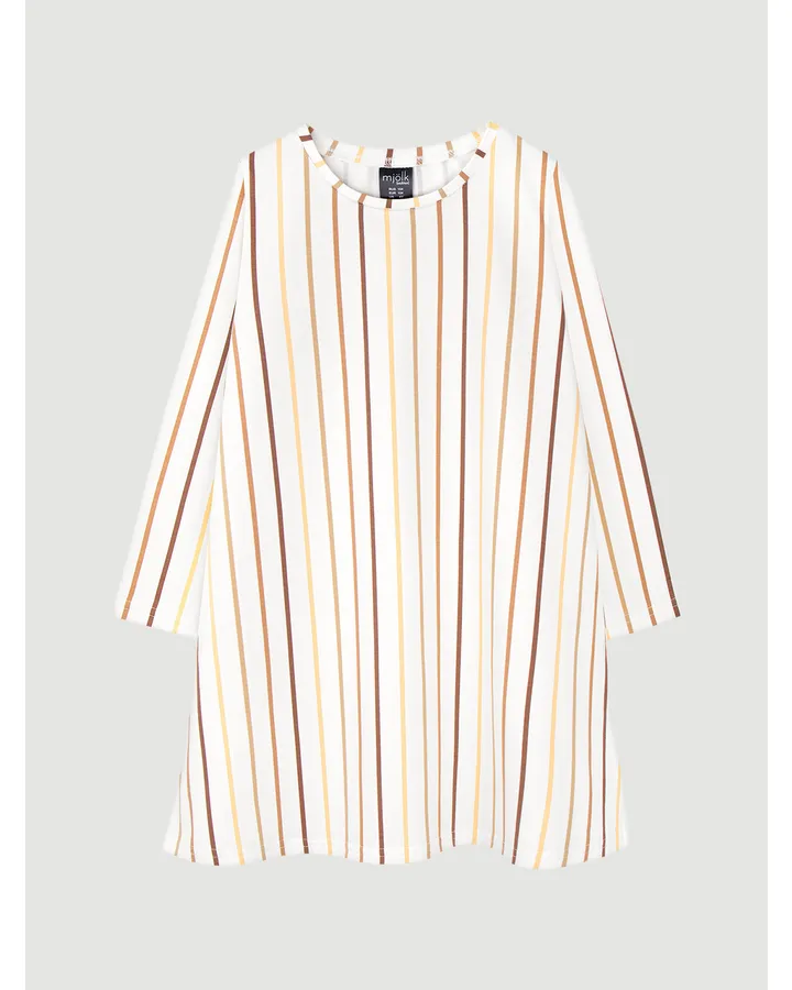 5Платье FuturinoКрасивое платье, горловина и правда широкая. На рост 107см размер 110 в самый раз , чуть запас есть по рукавам. Не маломерит.