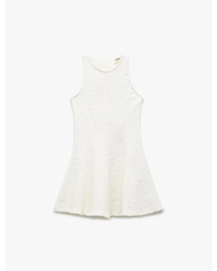 Красивое платье, горловина и правда широкая. На рост 107см размер 110 в самый раз , чуть запас есть по рукавам. Не маломерит.