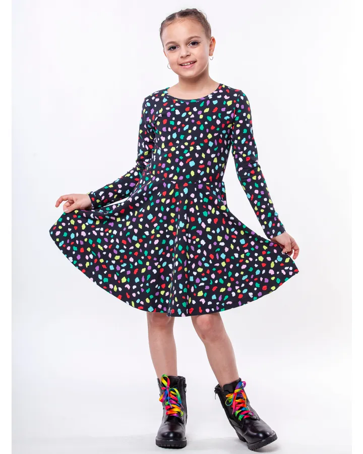 Платье очень красивое, ткань легкая, не мнется. На возраст 2,5 года купили размер 98 все подошло, сидит великолепно. После стирки цвет не поменяло, все хорошо