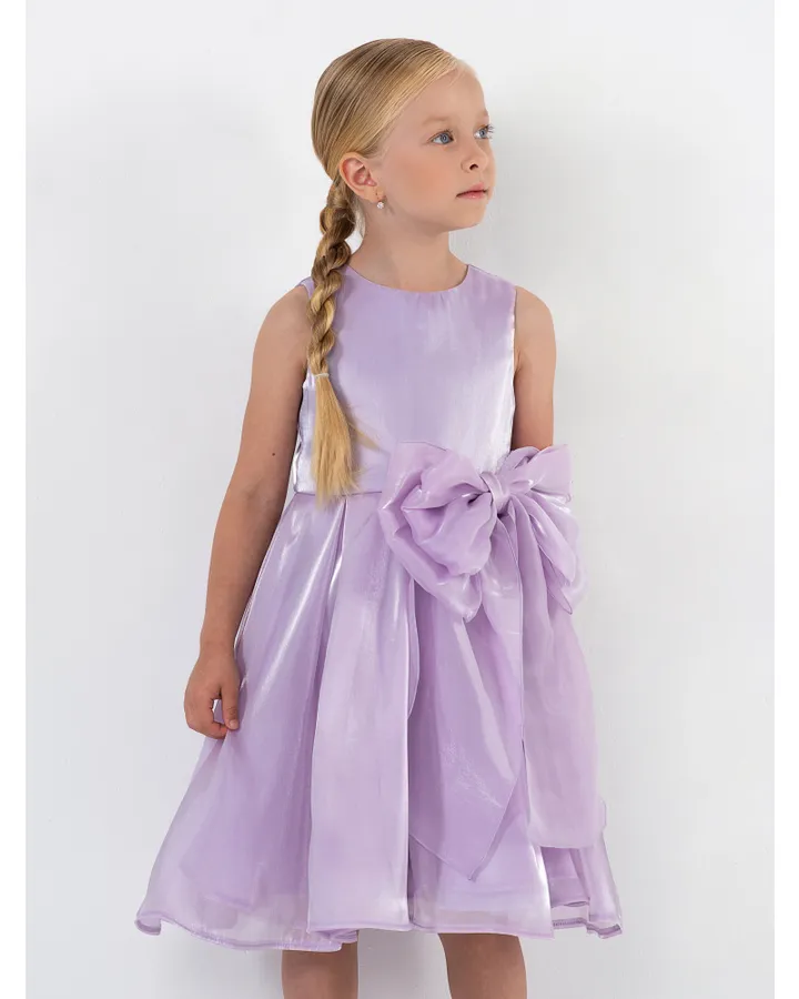 Прекрасное платье. Красиво переливается. Размер 104 был немного великоват на рост 104, сейчас на рост 110 сидит как раз. Ребёнок среднего телосложения.
