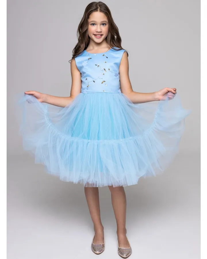 Прекрасное платье. Красиво переливается. Размер 104 был немного великоват на рост 104, сейчас на рост 110 сидит как раз. Ребёнок среднего телосложения.