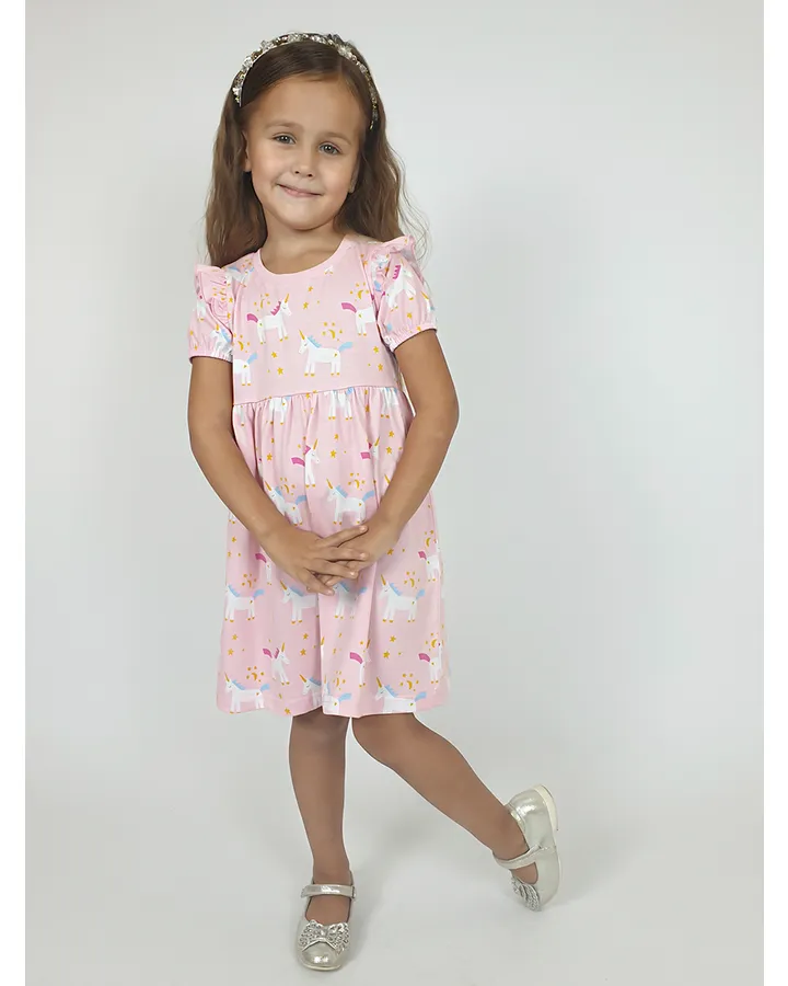 Красивое, нежное платье для девочки. Дочь одень худенькая, платье 104 хорошо село на рост 98. Ниже колен, так что думаю хватит и на этот и на следующий сезон, просто будет немного короче, учитывая что ребёнок худой.