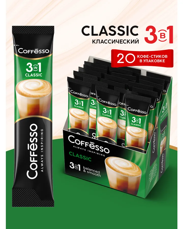 Кофе растворимый Coffesso Cappuccino 3в1 молотый 300г стик