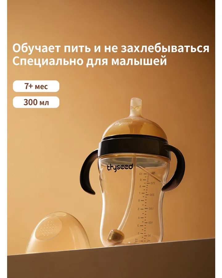 Поильник thyseed 300 млОтличный поильник. Теперь ребёнок стал много пить , ему именно нравится сосать как соску трубочку. Но надо отметить , что он уже хорошо умел до этого сосать из трубочки . Качество самой бутылочки очень хорошее.