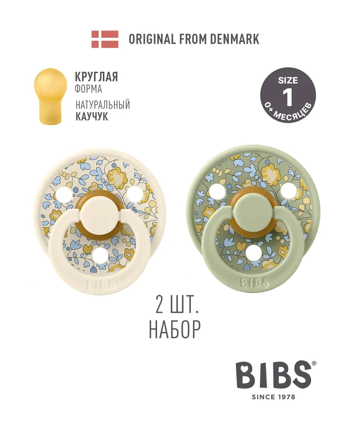 Пустышка BIBS латекс классическая от 0 мес. 2 шт.