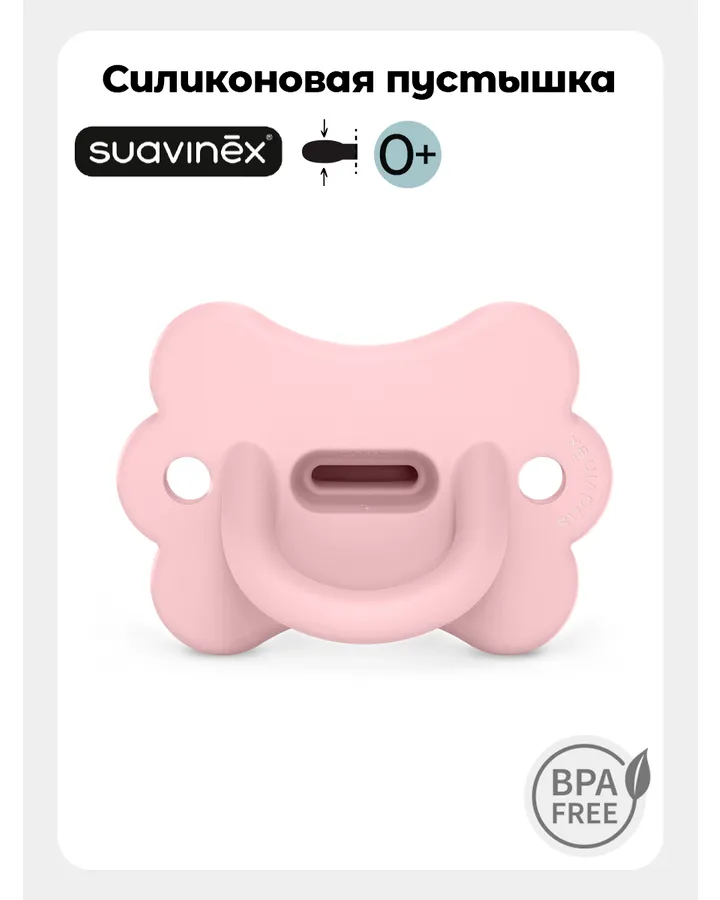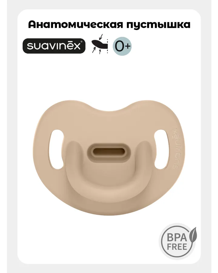 Пустышка Suavinex силикон ортодонтическая от 6 мес. 2 шт.Взяла после avent, т.к. потерялись и не пожалела , намного лучше дизайн, дочка взяла ее сразу. Сама соска потоньше чем avent. Снаружи поменьше корпус