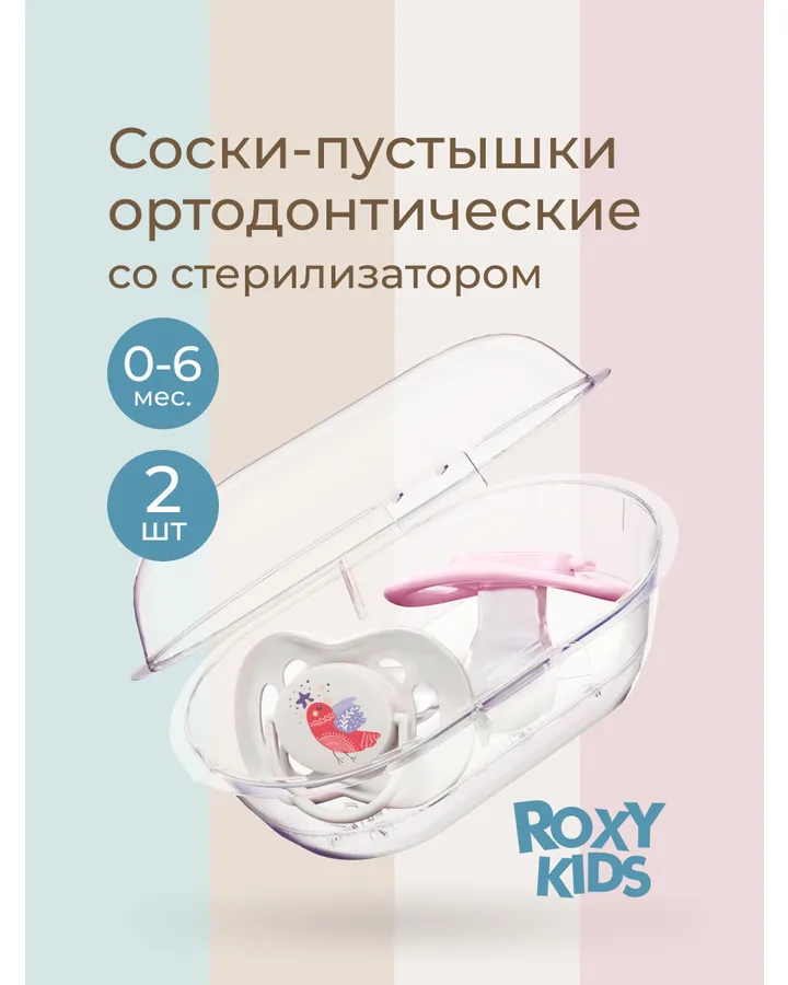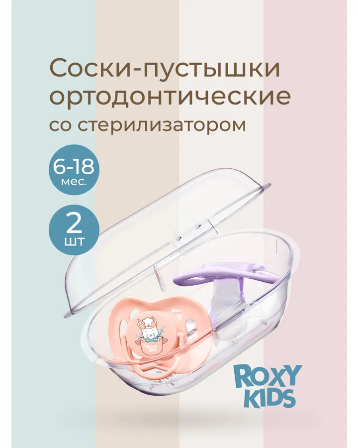 Пустышка ROXY-KIDS силикон от 6 мес. 2 шт.Удобно, что пустышки в контейнере. В нем же можно их стерилизовать в микроволновке
