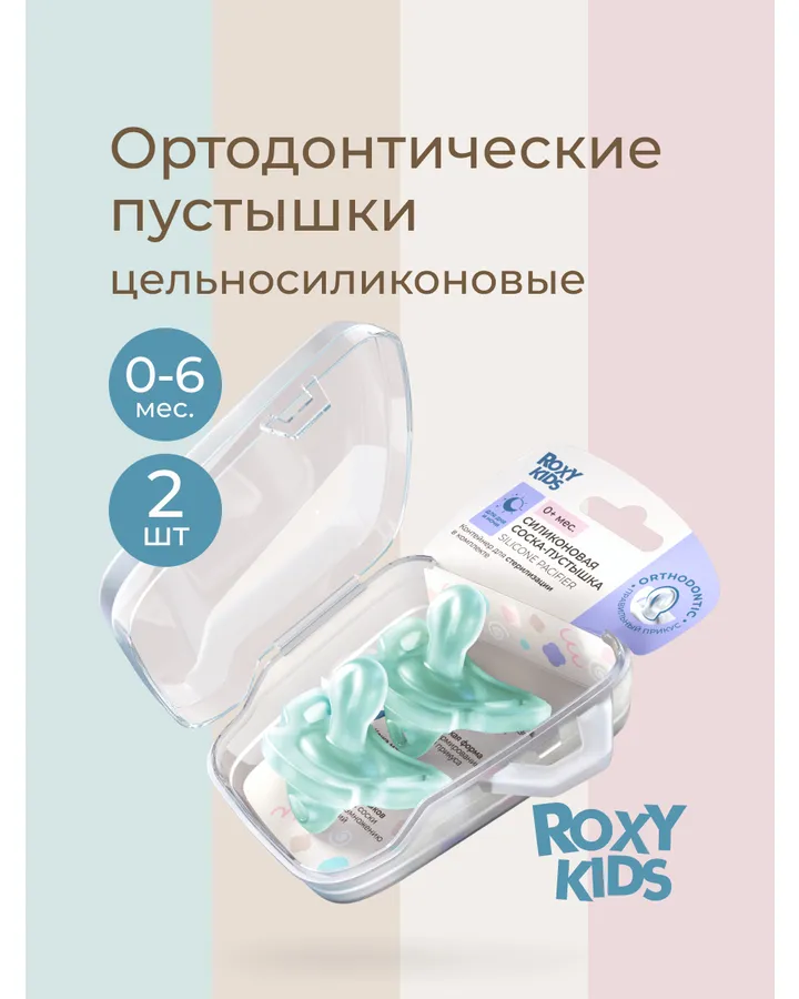 Пустышка ROXY-KIDS силикон ортодонтическая от 0 мес. 2 шт.