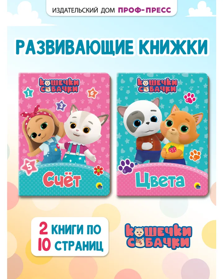 Книжки картонные Проф-Пресс 2 шт Кошечки-собачки Счёт и Цвета