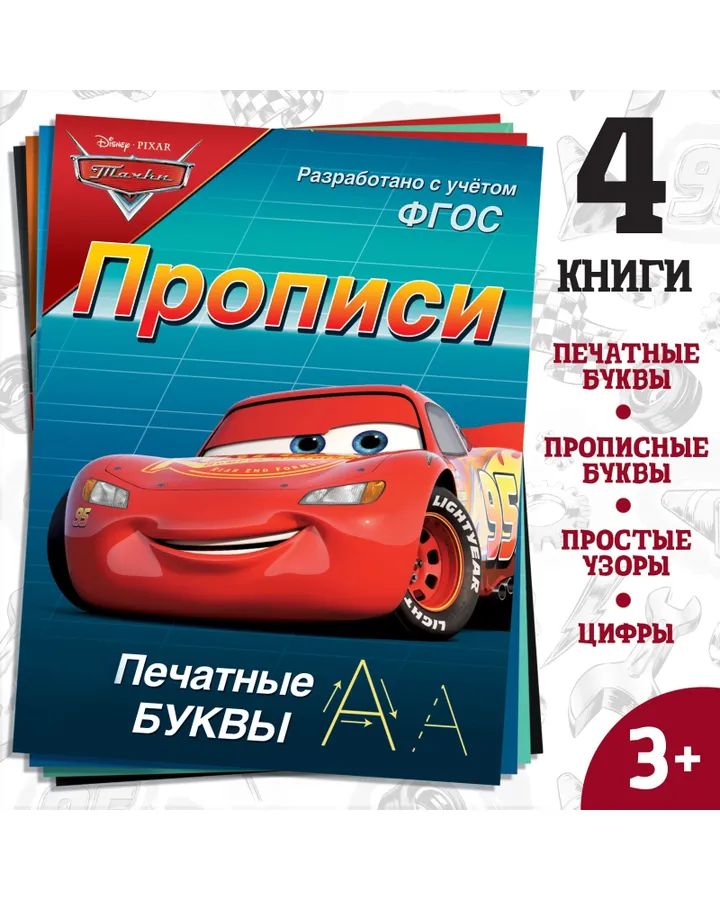Набор прописей Disney Буквы цифры и фигуры 4 шт по 20 стр А5 Тачки