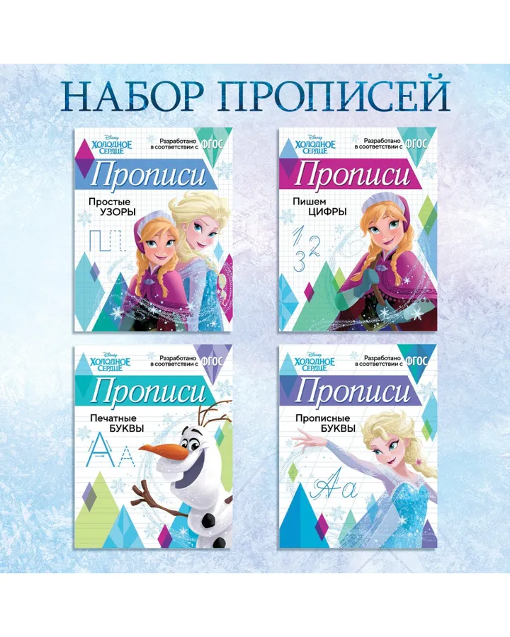 Набор прописей Disney Буквы цифры и узоры 4 шт по 20 стр А5 Холодное сердце