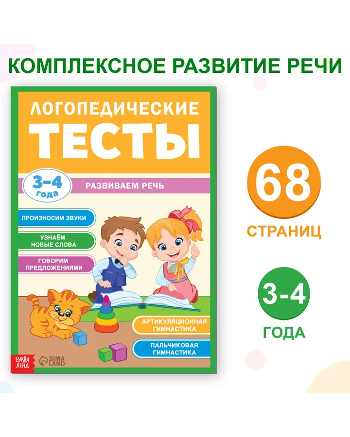 5Обучающая книга Буква-ленд «Логопедические тесты. Развиваем речь» для детей 3-4 лет 68 страницОчень хорошее качество